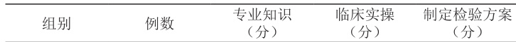 观察组专业知识、临床实操及制定检验方案测评分数相较于对照组均更高,P<0.05 ,计算有差异,见表 1。