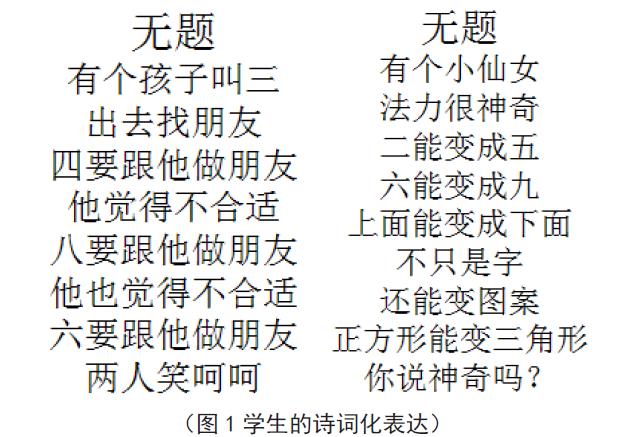 包含数学元素的诗词创作对于小学生来说难度不小,但也因其挑战性更能调动学生的积极性。通过数学拓展课的开展,让学生从脍炙人口的作品中初步感受数学诗的形态,积淀情感,尝试创作。