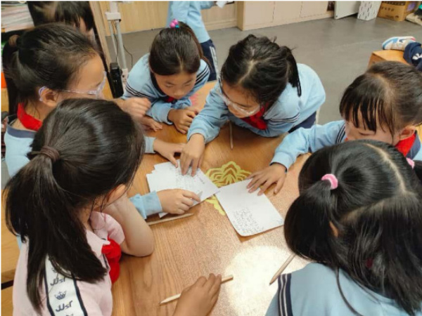 207 班学生在讨论皮影戏文本的编写顺序