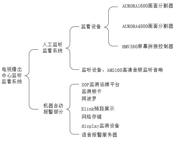 电视播出中心的监听监看系统包括人工监听监看系统和机器自动报警系统两部分。整体框架如图2所示。