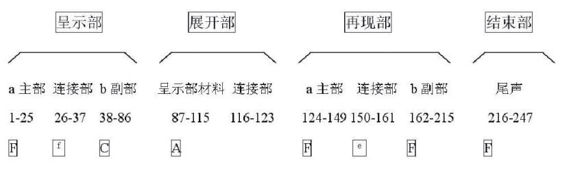 一、《春天》第一乐章音乐分析与演奏技第一乐章的曲式结构采用了传统的奏鸣曲式,F 大调,快板,结构图如下: