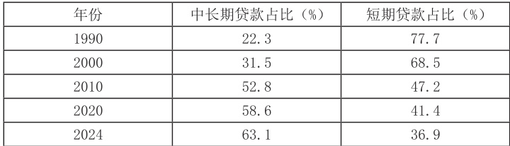 如下表是 1990-2024 年我国银行中长期贷款占比变化趋势,更能直观的看出不同时期中长期贷款占比的变化情况: