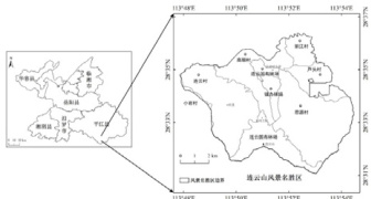 连 云 山 风 景 名 胜 区 位 于 湖 南 省 岳 阳 市 平 江 县 加 义 镇 南 部, 地 跨 东 经113° 47′ 51″ ~113° 54′ 29″,北纬 28° 31′ 03′′ ~28° 36′ 23" ″,面积为 61.63 平方公里。连云山风景名胜区属于罗霄山脉的北端,最高海拔为 1600 米,是典型的山岳型风景名胜区。风景区属于亚热带季风气候,雨热充沛,林木茂密,沟谷纵横,野生动植物资源丰富,分布有云豹、穿山甲、大灵猫、黄腹角雉等国家一级保护动物,拥有国家保护动植物30 余种,是湖南省的中药材主产区,生态价值十分重要。除自然资源外,风景区还拥有众多的红色遗址和人文资源。风景区共涉及 8 个村庄行政单位,包括连云山村、高塅村、思源村、芦头村、丽江村、小岩村、连云山国有林场、镇办林场。