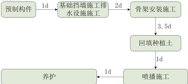 以单侧 500m2 为一个单元计算,预制框格骨架构件生产为 2 天,从生产达到养护期时间为 8 天。安装 500m2 预制框格骨架植草防护时间为 8.5 天。