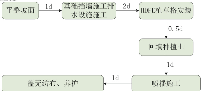 蜂巢格室(HDPE)采用折叠展开方式,现场施工仅需人工展开铺于边坡即可,除运输器具外,基本无其他施工设备,仅需施工人员约5 人。