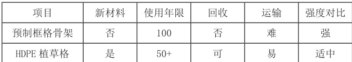 表2 :预制框格骨架与蜂巢格室(HDPE)施工材料对比