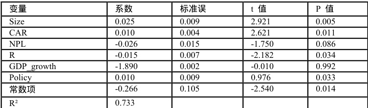 从上表可以得出:微观特征:资产规模每增加 1% ,GCR 提升 2.5% ;资本充足率每提升1% ,GCR 提升 1% ;不良贷款率负向影响但不显著(国有银行不良率稳定)。宏观因素:政策利率上升 1% ,GCR 下降 0.015% ;GDP 增长率无显著影(政策导向主导)。政策效应:MPA 考核后 GCR 平均提升 1% ,验证政策强制引导作用。