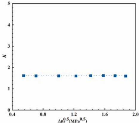 图4 展示了离心喷嘴的流量数 K 与压降平方根(△ pf0.5} )(单位为 MPa0.5 )的关系。经计算,本文设计的离心喷嘴流量数 K 为 1.61 g/(s·MPa0.5 )。研究结果表明,流量数 K 几乎不受燃料压降的影响,这一特性可以通过燃料流经离心喷嘴的物理过程进行解释。