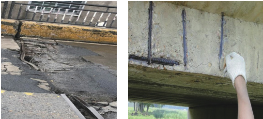由于钢筋在工程中的广泛应用,以及对结构稳定性和强度的重要影响,钢筋的质量是施工中的重点内容。然而,钢筋材料本身特性决定了它在使用过程中极易遭受腐蚀,这不仅削弱了钢筋的结构稳定性,还大幅降低了其强度。尤其是当混凝土出现裂缝时,暴露在外的钢筋会因外界环境因素,如雨水、暴雪或强烈日光的影响而加速锈蚀过程,这对桥梁结构的安全性构成了严重威胁。随着各地道路、桥梁及隧道工程使用年限的增长,这些问题逐渐显现,导致一些地方出现了断桥和危桥的现象,如图2 所示。