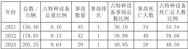 表1 2021 年~2023 年全国特种设备安全状况统计