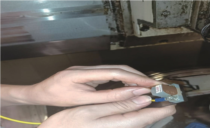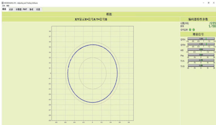 打开铣削主轴的侧面边盖,找到主轴编码器,将读数头与信号转换模块的连接头拆掉,确定读数头的接口后,找到相对应接口的转接电缆,连接上编码器测试仪。在根据铣削主轴选用的编码器型号,确定编码器的信号输出类型和 ID,通过查找铣削主轴编码器的信号输出类型为增量信号,ID 为 :385489-07。[1] 然后打开电脑里的测试软件,选择增量信号测试,输入编码器ID,在手动慢速旋转铣削主轴,观察测试软件上编码器的反馈信号是否正常,发现编码器的反馈A、B 信号极不稳定,以此锁定故障原因在主轴编码器读数头上。
