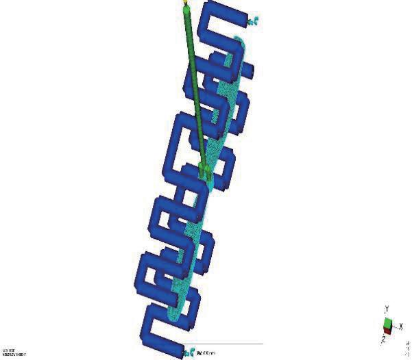 通过浇口分析后得到螺旋桨注塑成型较好的浇口位置,如图 3.5 所示。浇注系统由冷流道、冷浇口、A 主冷流道组成。利用Moldflow 的冷却回路向导自动创建了冷却系统。