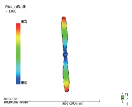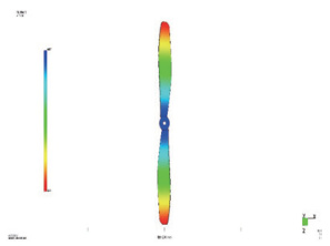 对 SABIC 公司的材料使用在无人机螺旋桨制作的调研,具体数据如下所示表 3-1。通过表内参数对无人机螺旋桨进行初步模流分析,得到螺旋桨最大翘曲量为 0.2784mm ,模流分析结果如下图3-6 所示。