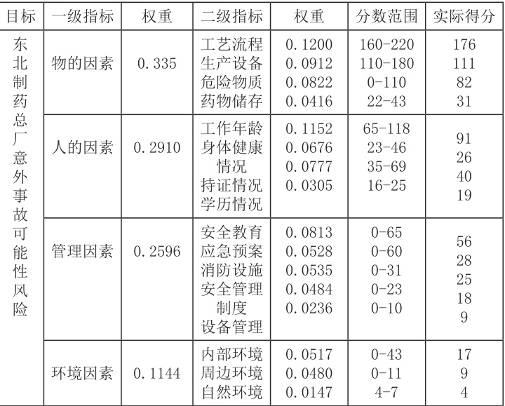 表3.1 东北制药总厂风险查勘表
