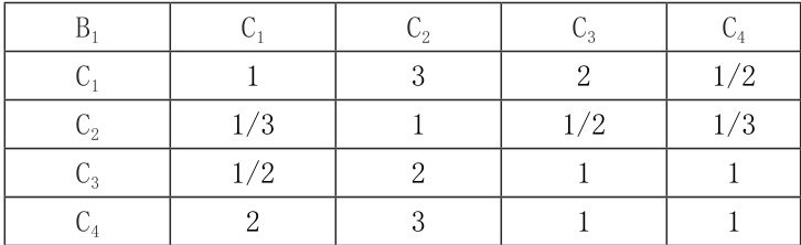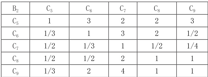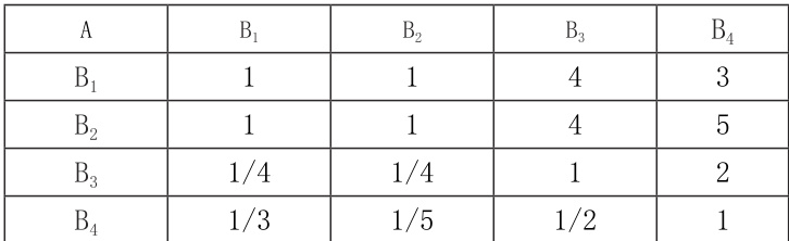 (1)经过判断,目标层A 的判断矩阵如表3.3 所示。