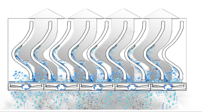 逆流效应:相邻旋风子交汇区气流对冲,促使0-20μm颗粒碰撞聚合;