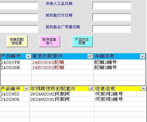 柔性化产品信息管理应用,需根据使用者对产品数据结构的设定,自动确定检查范围,当产品配套件发生重复编号或者非交付验收合格产品进入配套时,以明显的方式显示出错的配套产品编号与相应安装位置。