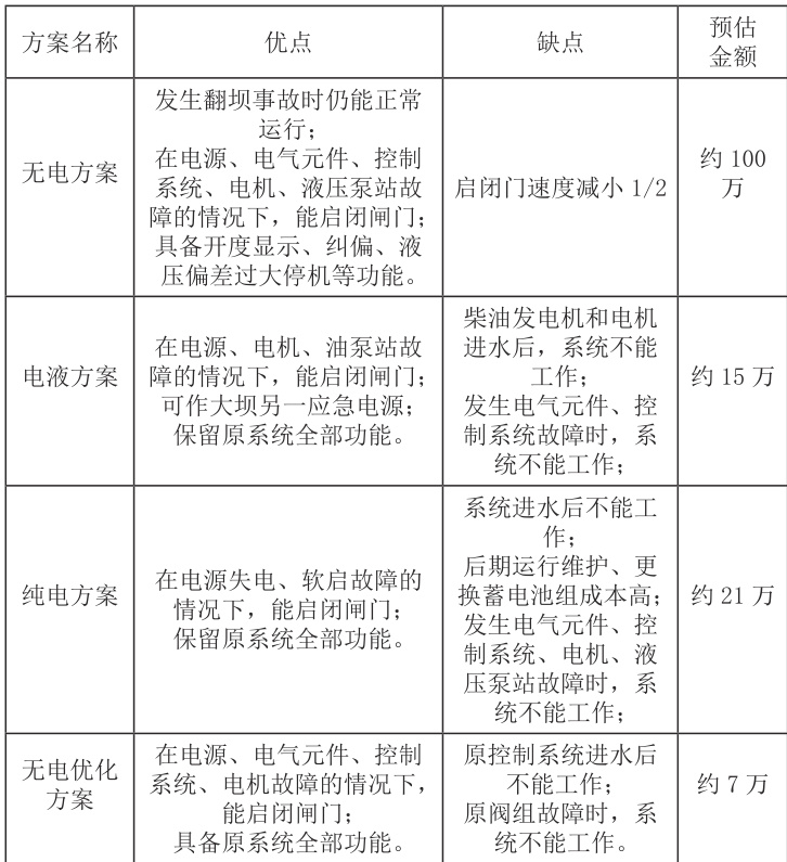 综上,无电优化方案能满足应急需求,启闭速度损失较小,改造性价比最优,经综合考虑,踏卡电站此次改造选择无电优化自主改造。