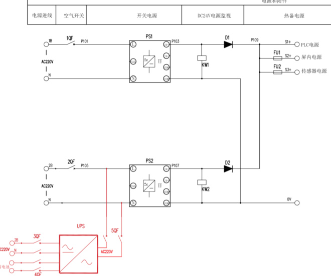 注:红色部分为新增UPS装置接线方式,