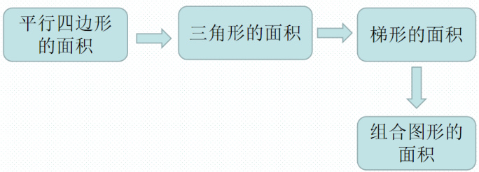本单元所对应的核心素养为量感、推理意识、几何直观,如何从单元整体视角出发,仅仅抓住发展学生核心素养这一主脉络,教材对此已经有了较为完整的体系梳 积再逐步递推到梯形的面积,教材紧紧把握“转化思想”这一核心, 梳理 公式的推导逻辑,设计连贯的探究活动。例如: 引导学生通过割补法将平行四边形转化为长方 原理;再启发学生将三角形、梯形转化为平行四边形,探究面积公式,使学生在知识迁移中深化对面 “量”的变化规律的理解。(具体教材编排如下图)