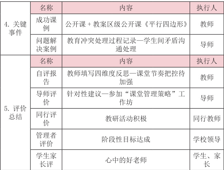 3. 资源精准匹配。学校根据群体性评价结果和个体,精准配置发展资源:为“胜任期”教师配强导师、提供教学基本功专项培训,为“成熟期”教师搭建展示平台(校 / 区级公开课)、支持其参与深度教研或微课题;为“引领期”教师创设工作室、支持其主持项目或对外交流。