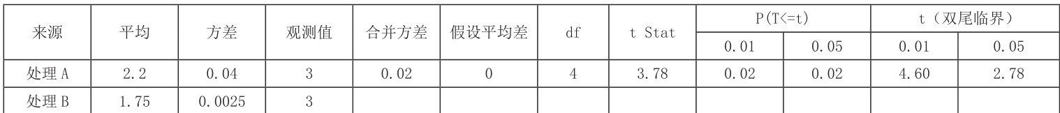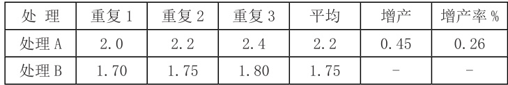 从测产数据可以看出,施用施地佳处理的平均单产增加了 0.45t,单产 增 幅 达 26% 。 对 产 量 进 行 了 t- 检 验,t(df) 0.05