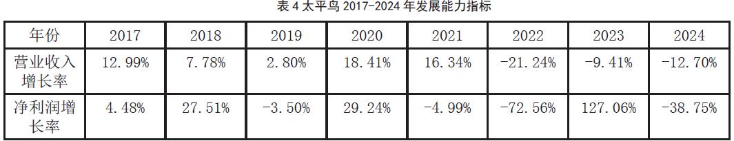 综上所述,在2017—2024年的数字化转型期间,太平鸟的财务绩效在偿债能力、营运能力、盈利能力和发展能力四个方面呈现出显著的波动特征。偿债能力方面,流动比率、速动比率和现金流量比率整体呈上升趋势,资产负债率先升后降,表明企业的短期偿债能力和资金流动性有所增强,资本结构逐渐趋于稳健。营运能力方面,应收账款周转率和存货周转率整体保持稳定,显示出企业在资金回收和库存管理上取得了一定成效,营运效率有所提升。盈利能力方面,销售毛利率和净资产收益率在波动中有所修复,但销售净利率和净利润增长率的波动较大,反映出企业在盈利质量上仍面临挑战。发展能力方面,营业收入增长率和净利润增长率的大幅波动,尤其是2022—2024年的负增长,揭示了企业在市场环境变化和竞争加剧下的转型挑战。