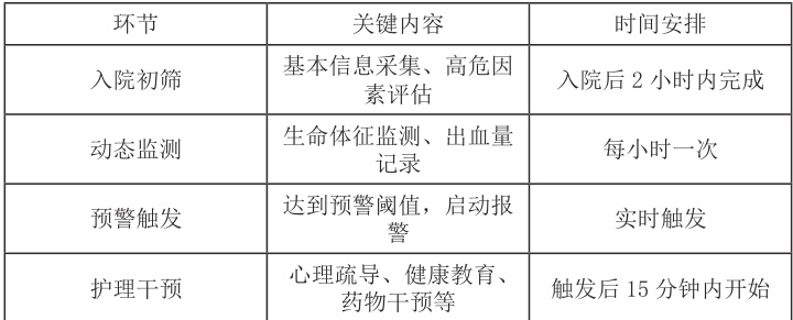 表1 产后出血早期预警系统临床实施流程