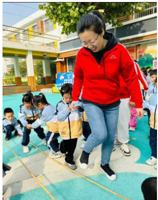活动反思:本次活动中孩子们从一开始探究制作竹竿的材料,到玩转真正的竹竿,再到竹竿巧用到主题活动中。整个过程都发挥了孩子们的想象力和创造力。游戏中孩子们发现问题、解决问题,养成了合作的良好品质。教师分析:《指南》中指出,“体育活动要遵循幼儿的身心发展规律,应指导幼儿循序渐进地进行练习”。老师巧妙引导孩子们积极探索,追随孩子们的兴趣和需要,引导小朋友体验体育游戏的快乐,增强他们的合作意识,感受成功的喜悦。