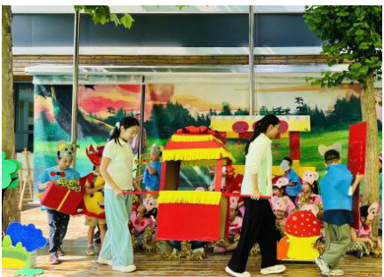 班里没有竹竿怎么办呢?孩子们有些失望。在兴趣的驱使中,佩霖小朋友皱着小眉头说:“老师,建构区长板积木可以替代竹竿吗?他的提议得到了其他小朋友的赞同,纷纷找来积木,两人一组进行尝试,但随着音乐声响起,刚刚开始的游戏戛然而止。
