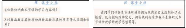 我们分别以人教A 版普通高中数学必修第一册第四章第四节第二课时对数函数的图象和性质和人教A 版普通高中选修第一册第三章第三节第一课时抛物线及其标准方程为例 , 来展示交流反馈式课堂小结 ( 详见图 8 和图 9).
