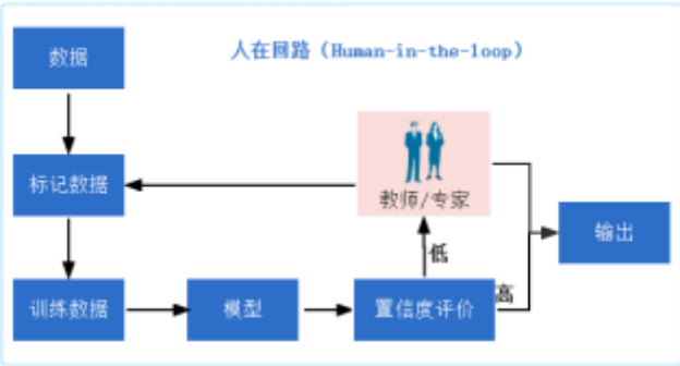 “人在回路”的概念是利用人和机器智能来创建机器学习的模型。当以人机协同的方式进行心理危机识别时,计算问题的求解需要人的参与或引入人的参与能提升问题求解的效果。原始机器学习的框架是:采集数据 - 标记数据 -训练数据 - 模型 - 置信度评估 - 采集数据的过程。在引入“人在回路”后,通过人工干预的主动学习方式来优化数据集合,提升数据的随机性、多样性和不确定性;通过人机接口对标记数据进行优化,从而更高效地得到训练数据;引入人类智慧,使数据的含义更清晰、更明确。机器学习的模式从填鸭式教学升级到答疑式教学,从而更加高效准确地做出判断。