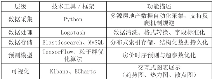 系统采用“分层架构 + 模块化设计”,从下至上分为数据层、处理层、模型层与应用层,核心技术栈如表1 所示。