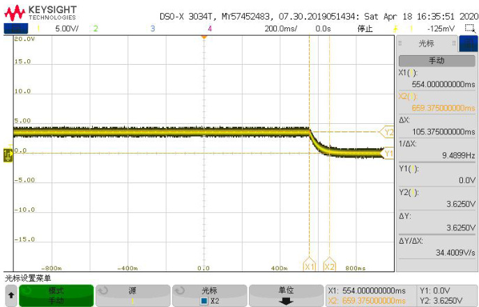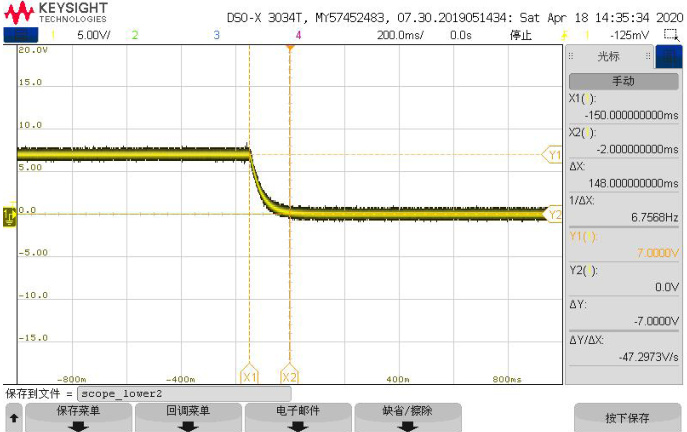 图4 是由示波器捕捉的打磨泵电机在发动机紧急停机状态下负载电流波形,由此可以看出如果发动机异常停机,发电机电压会在 148ms 内迅速由 AC600V跌落到 0V。因此在发动机异常停机的情况下,原先的控制方式存在巨大的安全隐患,打磨泵电机的启停控制命令下发的时效性直接关联打磨使能阀的关闭,影响打磨砂轮运行的安全。