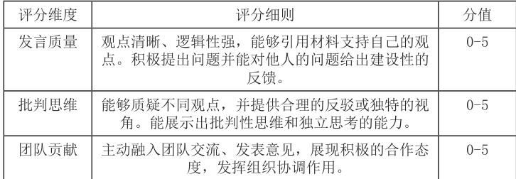 (一)形成性评价(60%)1. 课堂参与与思辨表现(