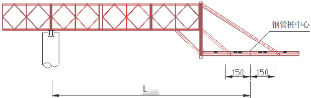 钢管桩定位系统采用贝雷桁架与型钢结构组合而成的悬臂式导向装置,该装置尾端通过销轴与已建钢便桥前端的贝雷梁实现可靠连接。导向架前部按设计桩位预先开设定位孔,确保导向精度。借助既有钢便桥或作业平台作为钢管桩定位基准,该工艺兼具操作便捷性与定位可靠性,显著降低水流对桩位的影响,有力保障了施工过程的安全性。