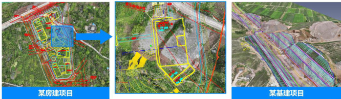 场景:施工规划阶段,需要了解项目实地和建筑设计(建筑物、道路、降排水等)的布局,以便做施工设计方案价值:采用实景建模和图纸叠加,能清晰的显示现场实地与建筑物布局关系,有利于在施工阶段进行土石方工程施工部署,能很好的指导施工道路设置做到永临结合,覆盖所有工作区间;同时在降排水及地表明排的设置规避楼栋,对场地阻碍物一目了然,帮助现场阻碍物迁改
