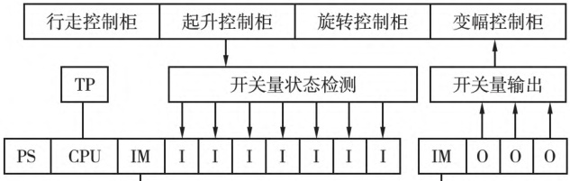 PLC 是借助数字逻辑运算完成系统指令内容的一种智能化控制技术。对于港口机械设备而言,PLC 控制可以在信息存储、运算的过程中有效模拟人工形式进行操控与操作。以门座起重机为例,该设施主要是完成货物装卸,一般包括行走、旋转、电伏、起升几个架构,若现场要进行转斗施工,则起升结构需要运行完成转导开合。对于该设备而言,PLC 技术融入下可以有效调试电气驱动,具体原理如下:当电源运行后,电力会经由系统配送至自动空气断路器中,然后经由隔离开关进行分配,此时工作人员便可以输入相关指令,指令经由 PLC技术处理后会自动执行,以此对继电器线圈加以调整,控制设备电气驱动。与传统使用形式相比,PLC 技术的融入不仅可以提高设备应用效率,而且还能够保障起重机运行的稳定性。具体系统操控架构如图1 所示[1]。