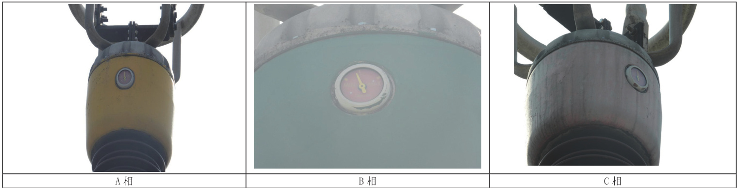 为全面评估设备状态,运维人员进行了多项检测。首先查看变压器高压套管的油位表,通过相间油位横向对比发现变压器高压套管的B相油位数据为0.4,A、C 相套管油位为 0.5,异常相油位较正常相低约 0.1 的油位,如图 2 所示。其次通过纵向对比 2024 年 6 月 13 日变压器高压套管的三相油位和 2024 年 10月01 日三相油位,发现变压器高压套管B 相的油位有下降的趋势,如图3 所示。