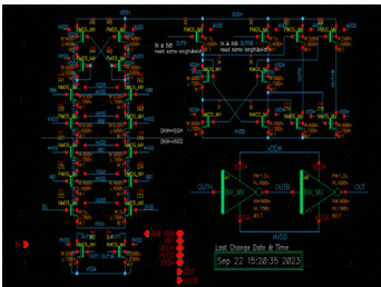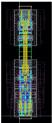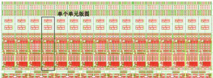 本文设计应用的显示驱动芯片横向分辨率为 1440,需要 1440 个源极驱动电路对每一列 OLED 进行驱动。主电路的电路图和版图如下所示,单个单元的功耗约为 6uA,面积约为 25um*133um。