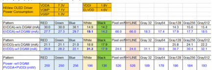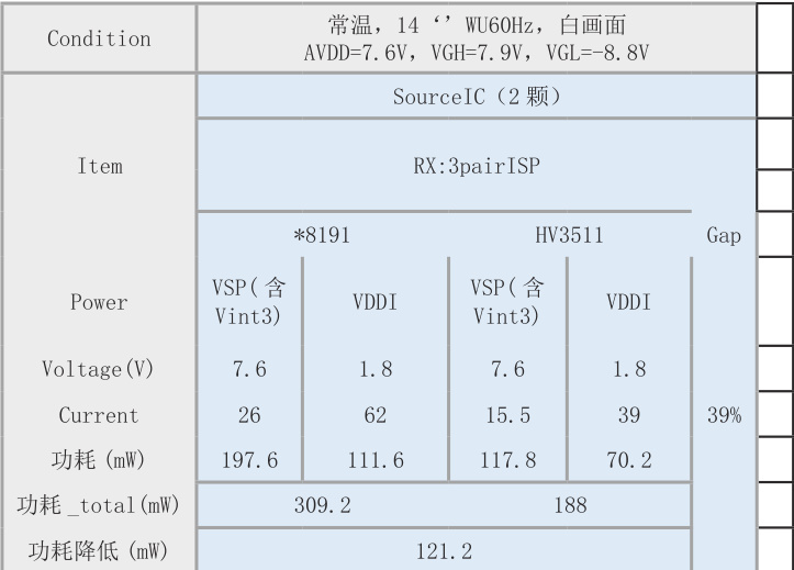 图 17 :OLED 驱动芯片功耗表2 :功耗效率提升表