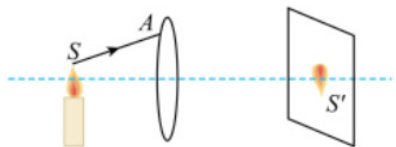 例 2. 根据下列凸透镜成像的光路图,试画出光线 SA 经凸透镜折射后的光路图。