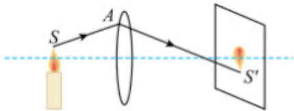在图上标出烛焰 S 和它的实像 S',以及凸透镜的中心轴和焦点。然后,在图上画出从点 S 发射的光线 SA,将其延长至透镜上。根据折射规律,用一个切线表示透镜表面上的入射光线 SA。这条切线应当通过透镜的中心,并且保持与法线垂直。接下来,让这条切线在透镜上折射,成为一条线穿过透镜焦点 (f)。最后,继续延长这条折射光线,画出光线在透镜背面的传播路径。这样,我们就完成了光线SA 经过凸透镜折射后的光路图。