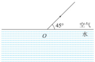 首先,确定入射光线的方向:确定光线从哪个方向射入介质表面。这可以表示为一个箭头或一条线。而已知给出一条由空气射向水面的反射光线,其角度为 45 度,故可以确定反射光线,接下来,在介质表面上的入射点处,画一条垂直于表面的线,这就是法线。确保法线与介质表面垂直相交,如图所示,使用一把量角器或直尺,根据反射光线与法线对应其夹角的角度,画出绿色光线与对应其入射角。其次,据斯涅尔定律,当光线由一种介质传播到另一种介质时,根据入射角和两种介质的折射率,可以计算出折射角。使用量角器或直尺,以入射角为参考,画出与入射光线相应折射角的折射光线。