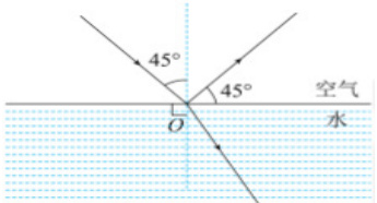 例 3. 有一条从空气向水面射入的反射光线,试画出该光线的入射光线和折射光线,并标注入射角的角度。