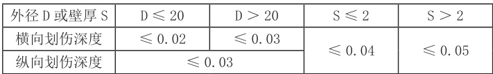 按照导管表面质量要求,导管内外表面不允许有裂纹、粗糙拉道,划伤深度要求如下表1。