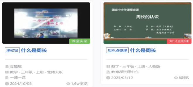 教育平台为《周长》单元提供了丰富多样的教学资源,包括微课视频、优秀课程包、课件及教学设计等。教师可以根据自己的教学需求和学生的实际情况,灵活选择和整合这些资源[4]。(2)运用平台资源,突破重点难点