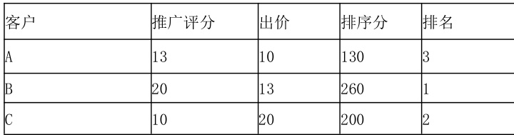 举例:3 家客户,同竞底价为 5 元的词,出价和推广评分如下:C 客户的产品被点击了扣多少钱?