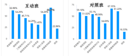互动形式偏好调研发现,两组学生均对“课堂小实验”、“观看案例视频”和“工程案例讨论”表现出最高兴趣(占比超 60%,见图4),为后续教学优化提供了明确方向。