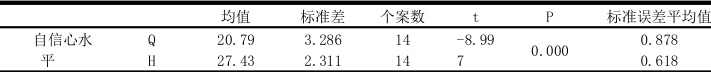 定量方面采用《罗森伯格自信心量表》,进行前后测对比。使用SPSS26.0 录入数据,对数据进行分析:服务对象自信心前后测数据对比